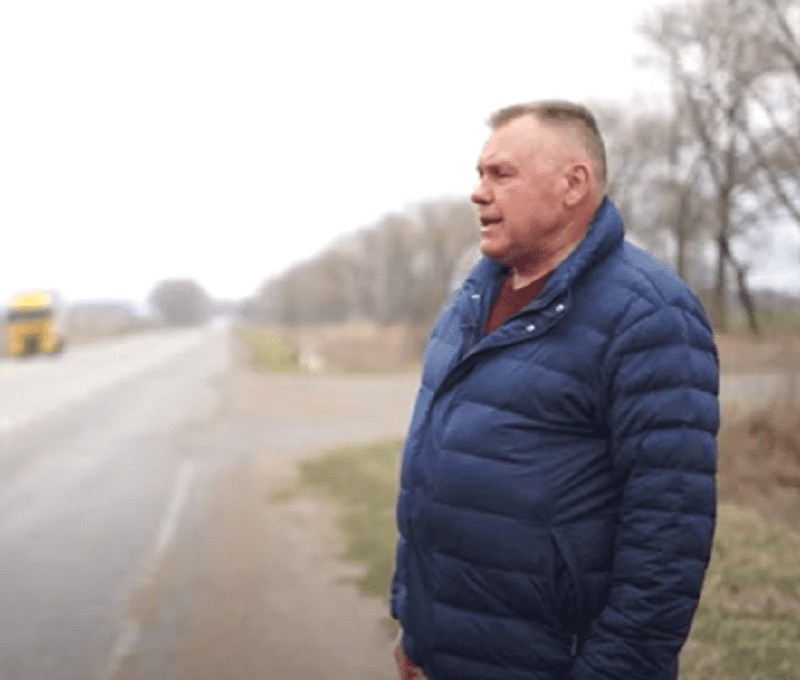 Спілкуючись з журналістами Кордон. Медіа пан Олексій розповів, що 24 лютого, він їхав додому з Полтавщини. Це 220 км, а тому назустріч чоловіку трапились всі хто міг. Розповідає, що були поліцейські машини, були наші бойові машини які їхали в сторону Києва. В одному місці помітив, що дорога була перекрита танком, з іншого боку БТР-ом, два чи три солдати знаходились на трасі, а інші сиділи у посадці. Чоловік підійшов до них, адже не зрозумів хто стоїть. Йшов, показуючи, що не має зброї й просто вирішив поспілкуватись. Підійшовши ближче запитав про “паляницю” і сказав “Слава Україні”. Відповіді зрозуміло не почув. Олексій говорить, що один з військових сказав, що він білорус, а інший, що був біля БТР-а, що він з Москви.